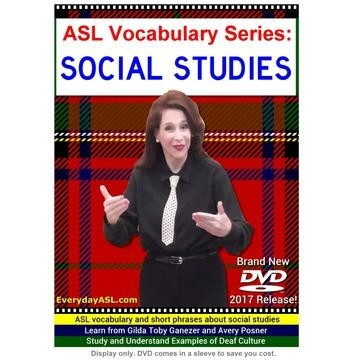 Foreign Aid... Inauguration... Inflation... Contradiction... Stock Market... Welfare...and really many more... How in the world do you sign these social studies related terms?, This ASL Vocabulary series DVD473 will demonstrate some hard-to-find Social Studies related vocabulary words in ASL. The knowledge of words, short phrases and Deaf culture throughout this DVD will encourage questions during classroom sessions. Throughout this DVD, you will also learn several new, valuable examples and explanations about Deaf Culture with Gilda Toby Ganezer and Avery Ganezer. (21 minutes, UPC 123456789126)